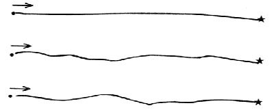 - Неспособность провести прямую линию (вертикальную, горизонтальную).