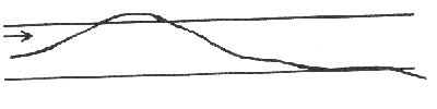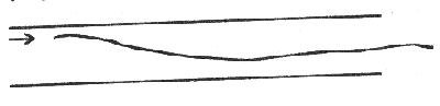 Если нарисована непрерывная линия посередине между двумя стимулирующими линиями без разрывов, острых углов или больших отклонений; изгиб и небольшой угол не влияют на результат:![]() Если ребенок отрывал карандаш, но линия без явных разрывов, острых углов: ![]() Если линия короче или длиннее стимулирующих линий не более чем на 0,5 см: