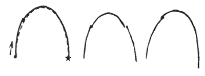 Если при обведении контрольной фигуры место отрыва приходится на стрелку, а дальше ребенок продолжал работать без отрыва. Если при выполнении задания ребенок отрывал карандаш, но продолжил работу без углов, разрывов, обводок: